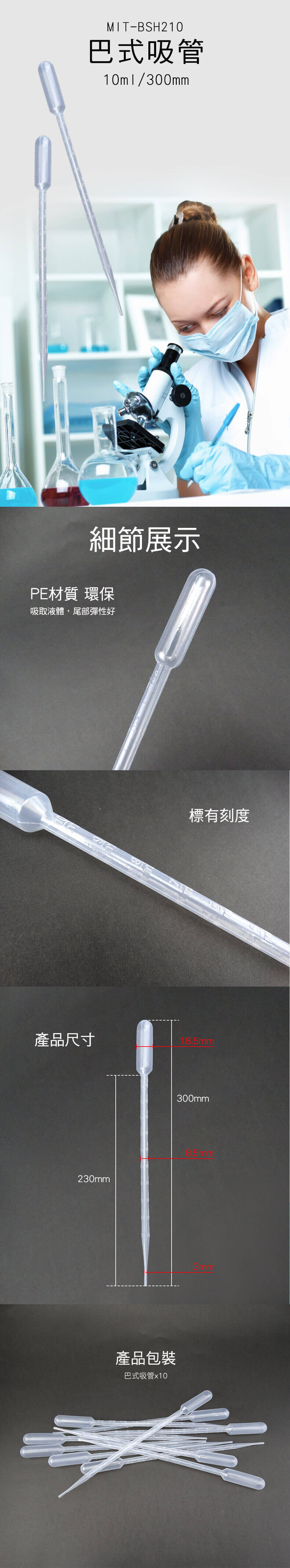 【儀表】BSH210 巴式吸管 10ml/300mm 水族吸管 診所藥水餵藥 分裝滴管 水晶滴膠 拋棄式滴管 拋棄式吸管