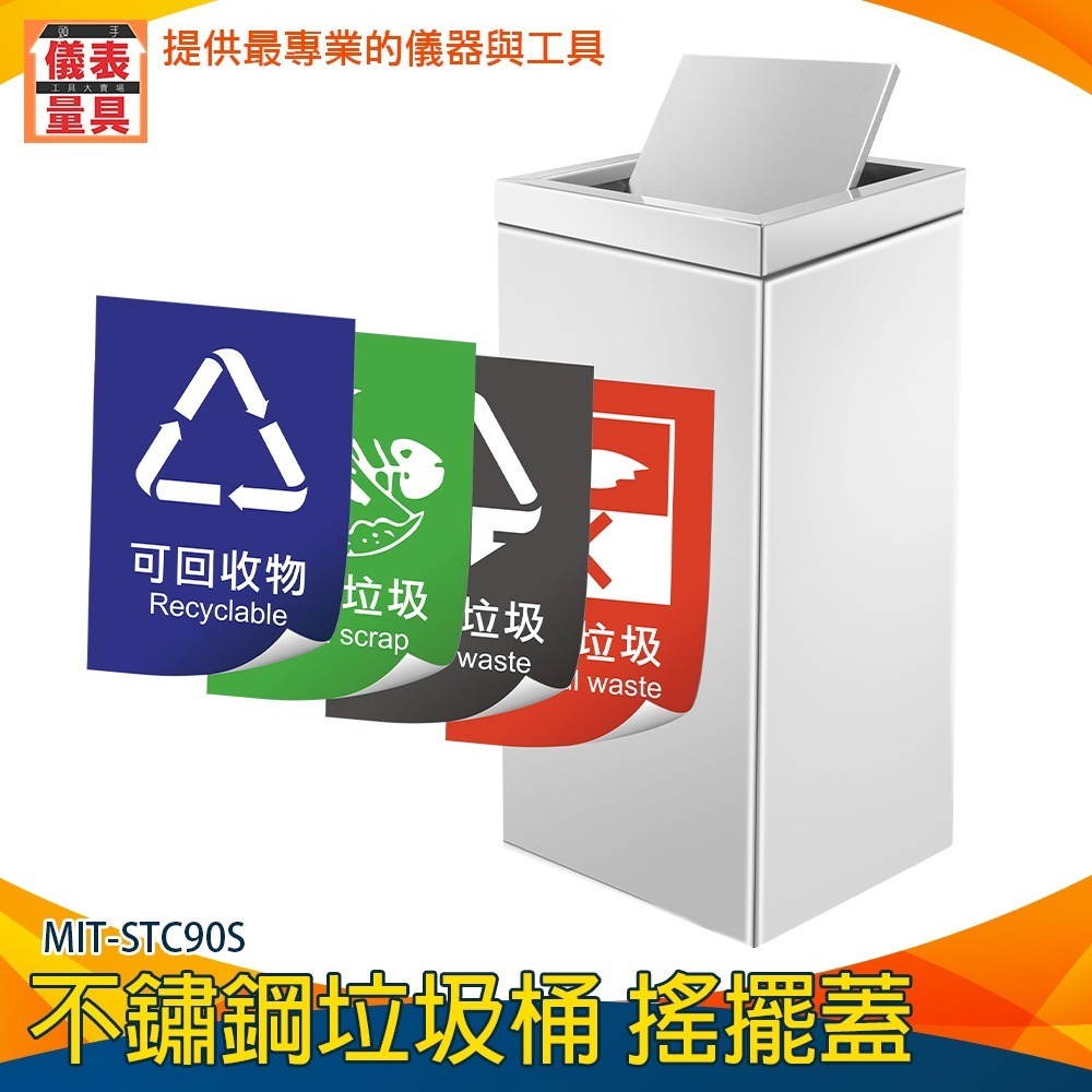【儀表】STC90S 辦公室分類回收桶 各類垃圾桶 方型垃圾桶 工廠垃圾桶 贈貼紙 搖擺蓋不鏽鋼垃圾桶 分類垃圾桶