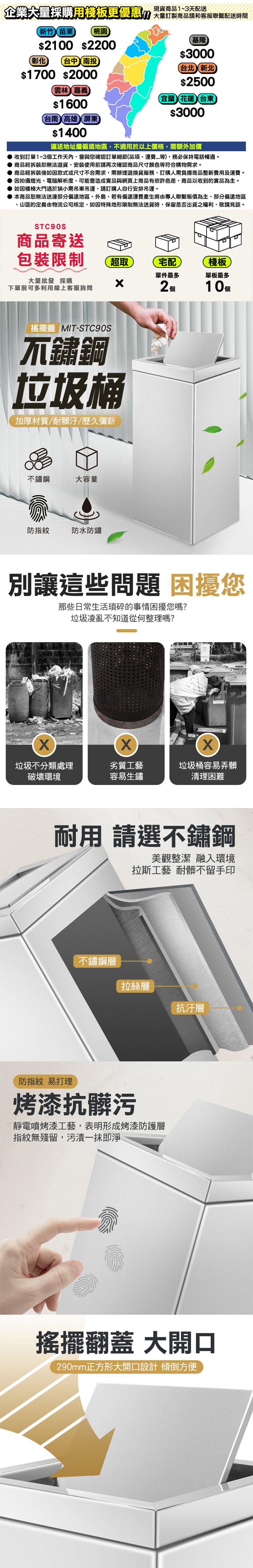 產品名稱:MIT-STC90S_不鏽鋼垃圾桶(搖擺蓋)