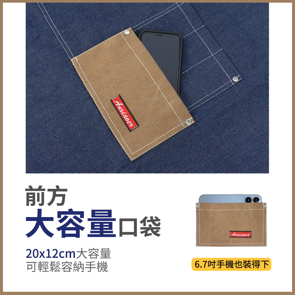 職人工作圍裙採用優質牛仔面料材質製作,版型屬簡約韓風設計,適合在咖啡廳、西式餐廳、飲料店、甜品店、理髮廳等場所穿戴,可防止工作時不慎潑濺,以及其他髒汙直接碰觸到衣服。精選透氣性好、手感舒適材質,背後採綁帶式設計,可依照個人喜好長度做調整,整體車工細緻緊實,作為穿搭也頗具時尚感。