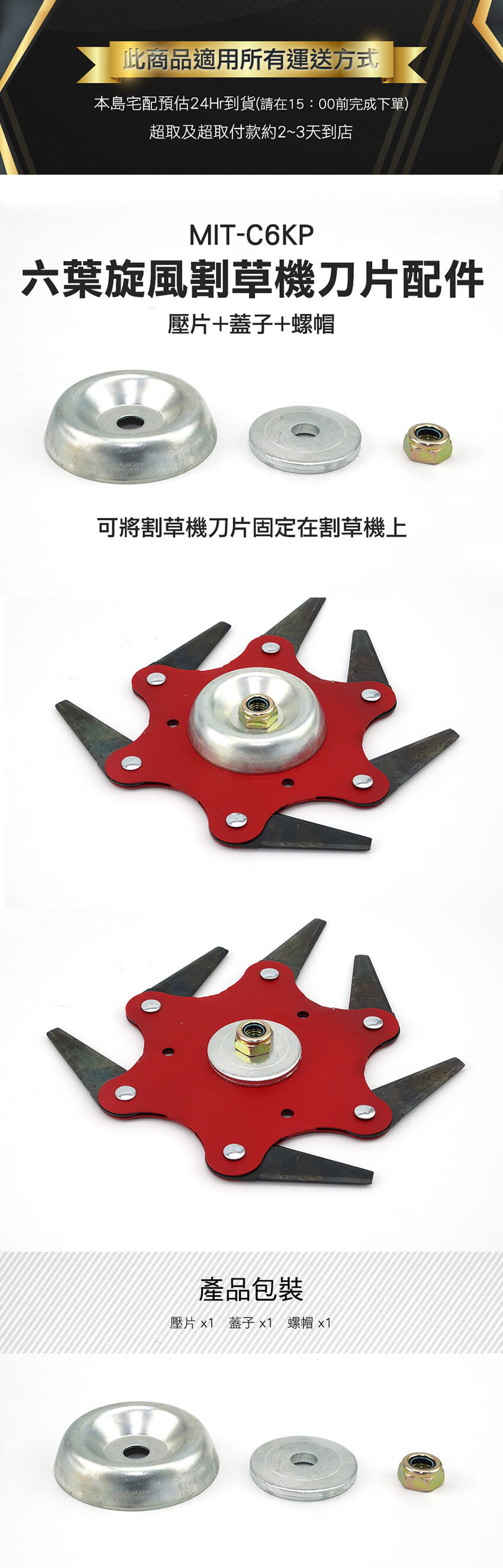【儀表】C6KP 六葉刀頭 六葉刀配件 割草刀安裝配件 六爪刀 刀片配件 六葉旋風割草機刀片配件 壓片+蓋子+螺帽