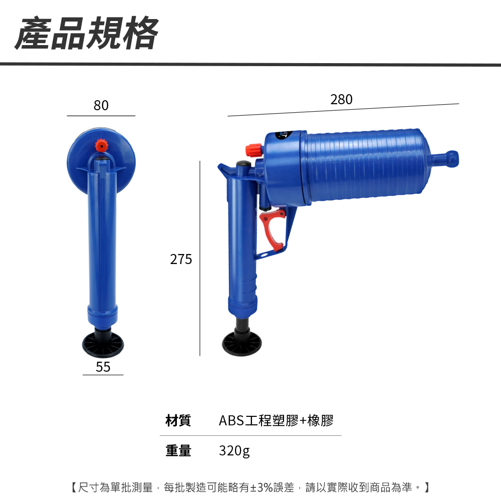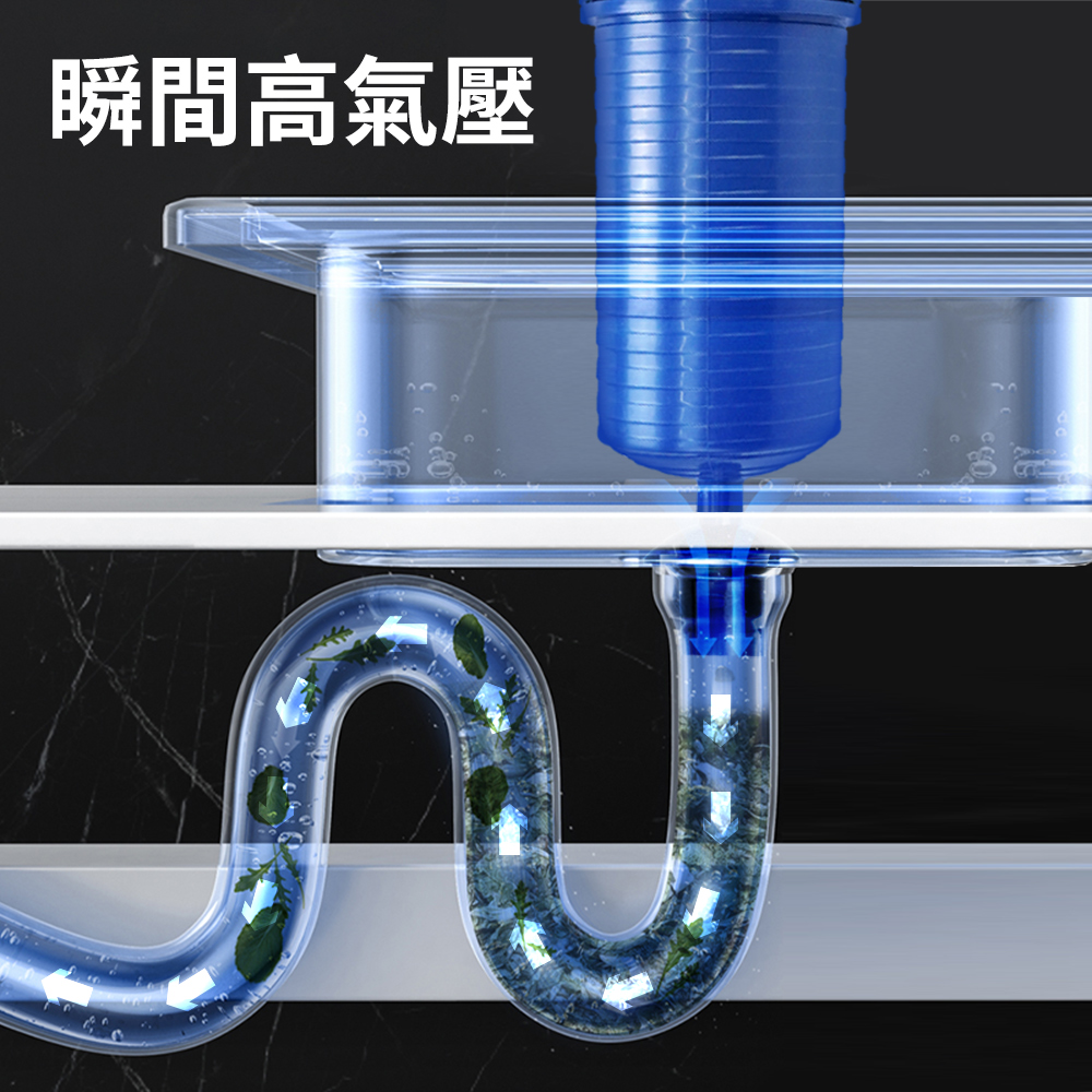 - 瞬間氣壓強勁,有效疏通堵塞管道。