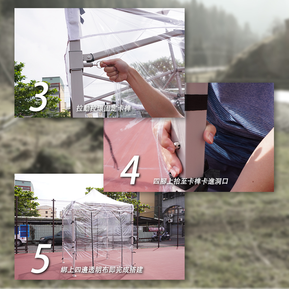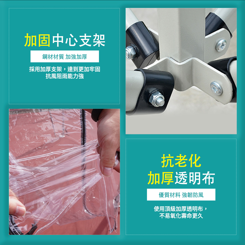 -加厚PVC透明布,可防風以及防雨水侵蝕。