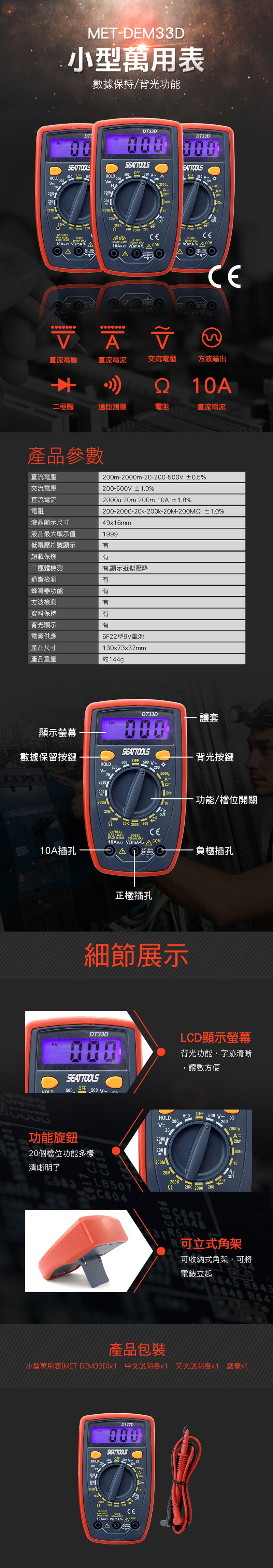 《利器》掌上型電錶 電子元件器 萬用電錶 MET-DEM33D 萬能電表 萬用電表 液晶顯示 小型萬用錶