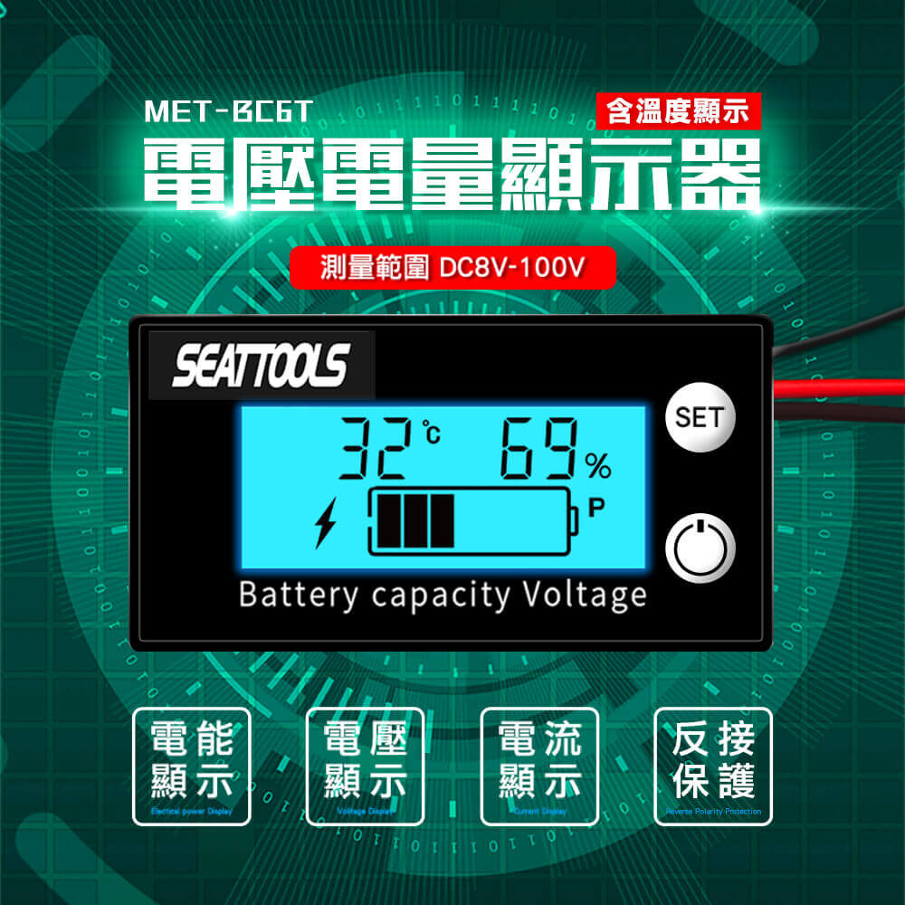 產品名稱:MET-BC6T_電壓電量顯示器含溫度測量