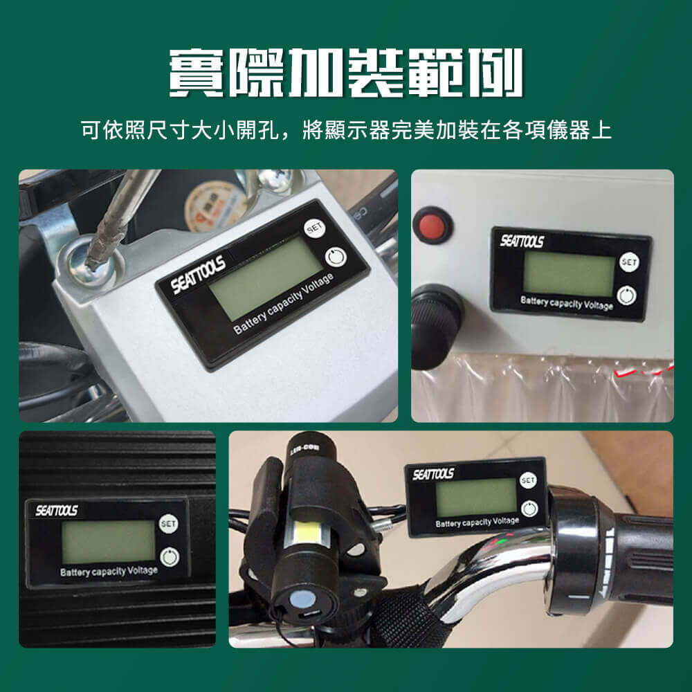 本儀器是用來檢測各式設備儀器的電壓電量工具,常見使用於電動交通設備上,安裝後可即時的查看剩餘用電量以及電壓,可避免耗盡電池的電量即時補充電力,以及有效掌控電壓是否過高或過低的危險。
