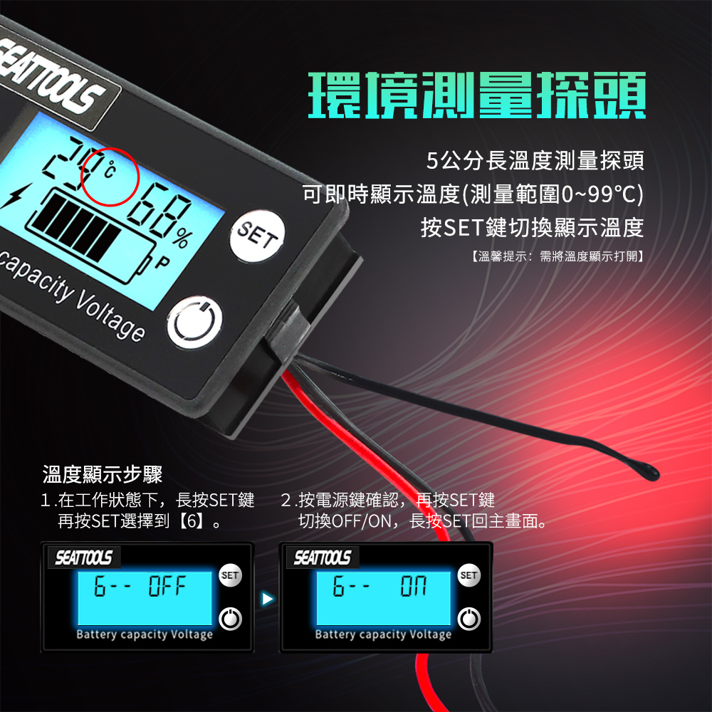 《利器》電池電量顯示器 溫度檢測 電壓測試 電壓顯示器 電量顯示板 電池電壓表 溫度檢測 電量表 電動車 機車 BC6T