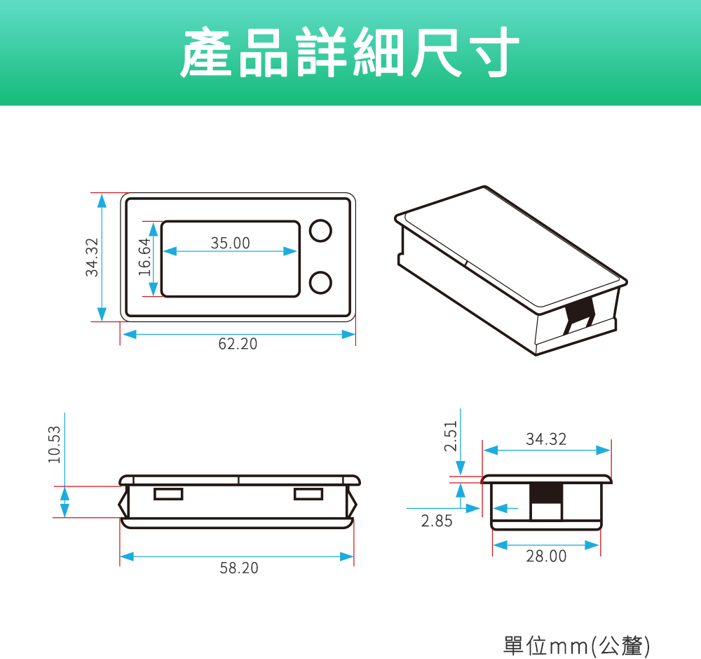 開孔安裝尺寸:58*28mm