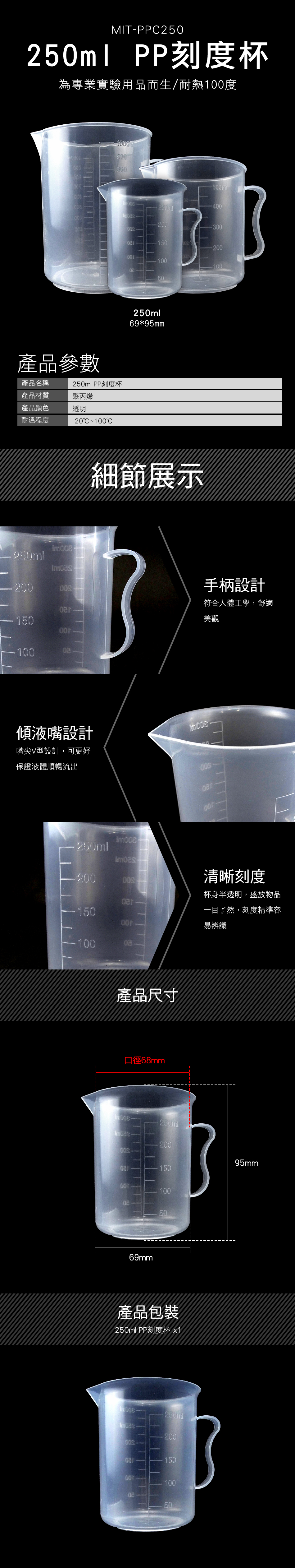 《利器》毫升計量量杯 塑膠量杯 塑膠有柄燒杯 PP刻度杯 塑膠燒杯 PPC250 刻度杯 量筒 飲料店量杯 刻度量杯