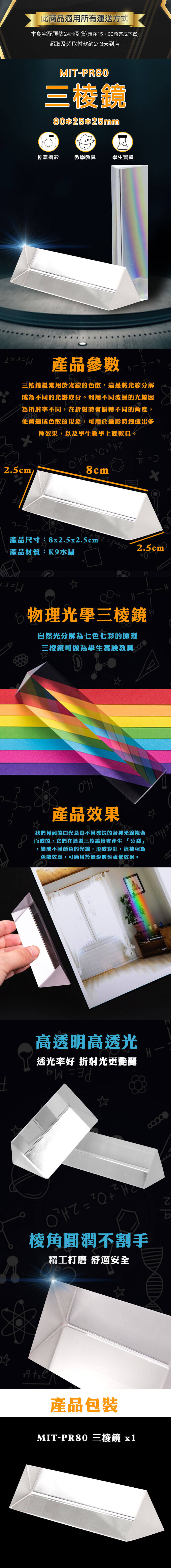 《利器》三棱鏡 七彩折射鏡 光學玻璃三菱鏡 物理萬花筒 物理光學實驗器材 光學鏡片 六面光 三稜鏡 三菱鏡 PR80
