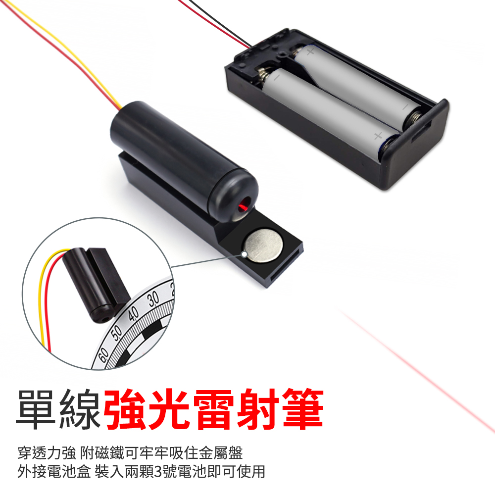 -強光雷射筆,附磁鐵可吸附在金屬盤上。