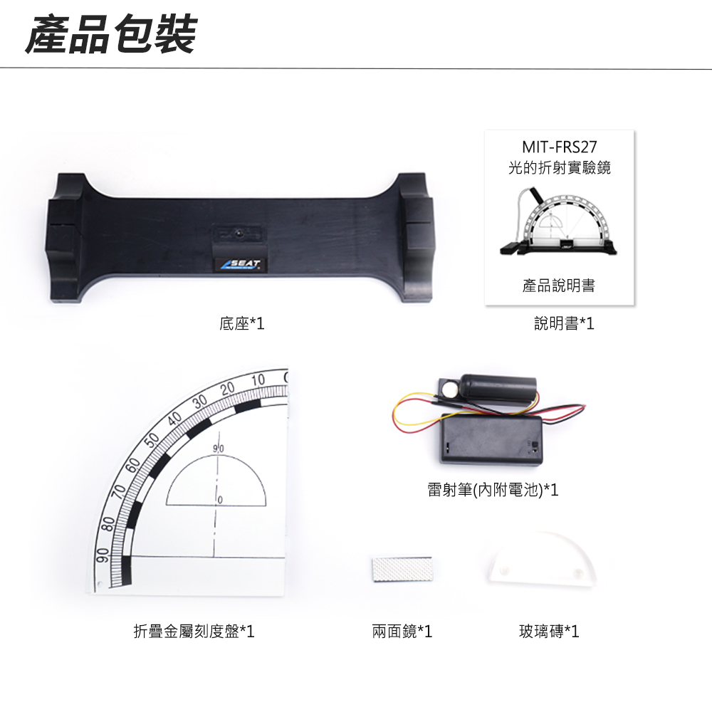-內附玻璃磚和兩面鏡,可演示反射和折射定律。