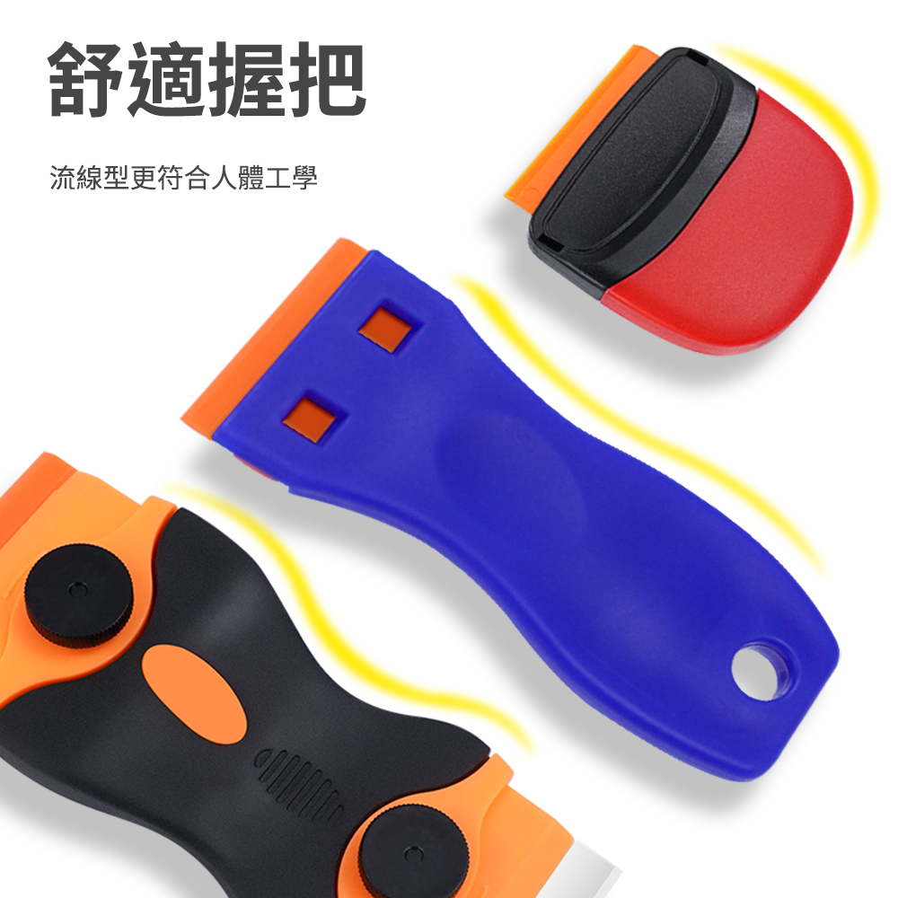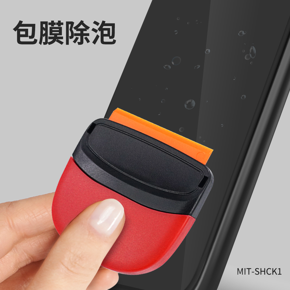 體積小巧,適用貼膜輔助除氣泡、小區域殘膠刮除;一頭塑膠製刀片、一頭金屬製刀片。塑膠刀片平整耐用不傷表面,可雙邊交替使用。