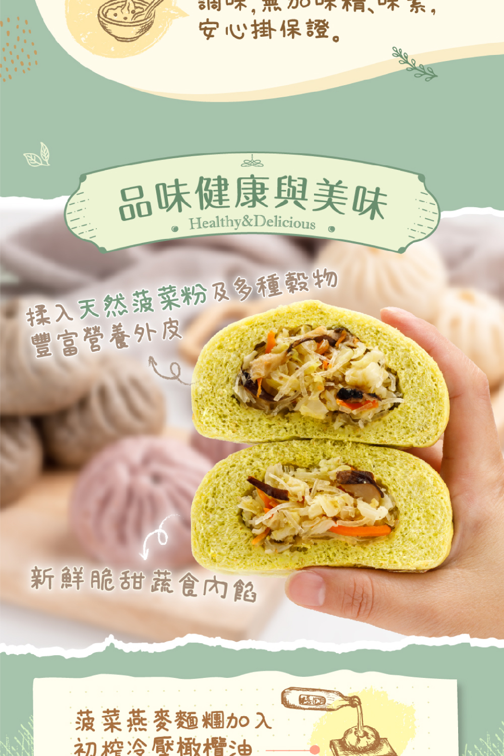 感謝您對【福穀樂幸福安心包子店】的支持,福穀樂使用義大利產特級初榨冷壓橄欖油,只經萃取未經過度加工,保留風味清爽無負擔,更借鏡法式馬卡龍色彩繽紛,品嚐視覺饗宴同時更追求健康和美味,將傳統包子再升級。