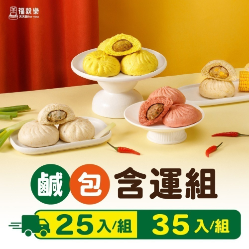 【福榖樂】鹹包含運套組25-35顆(鮮肉包 玉米包 咖哩包 辣肉包 菜包 兒童早餐 免運組合 養身包子 台灣製造)