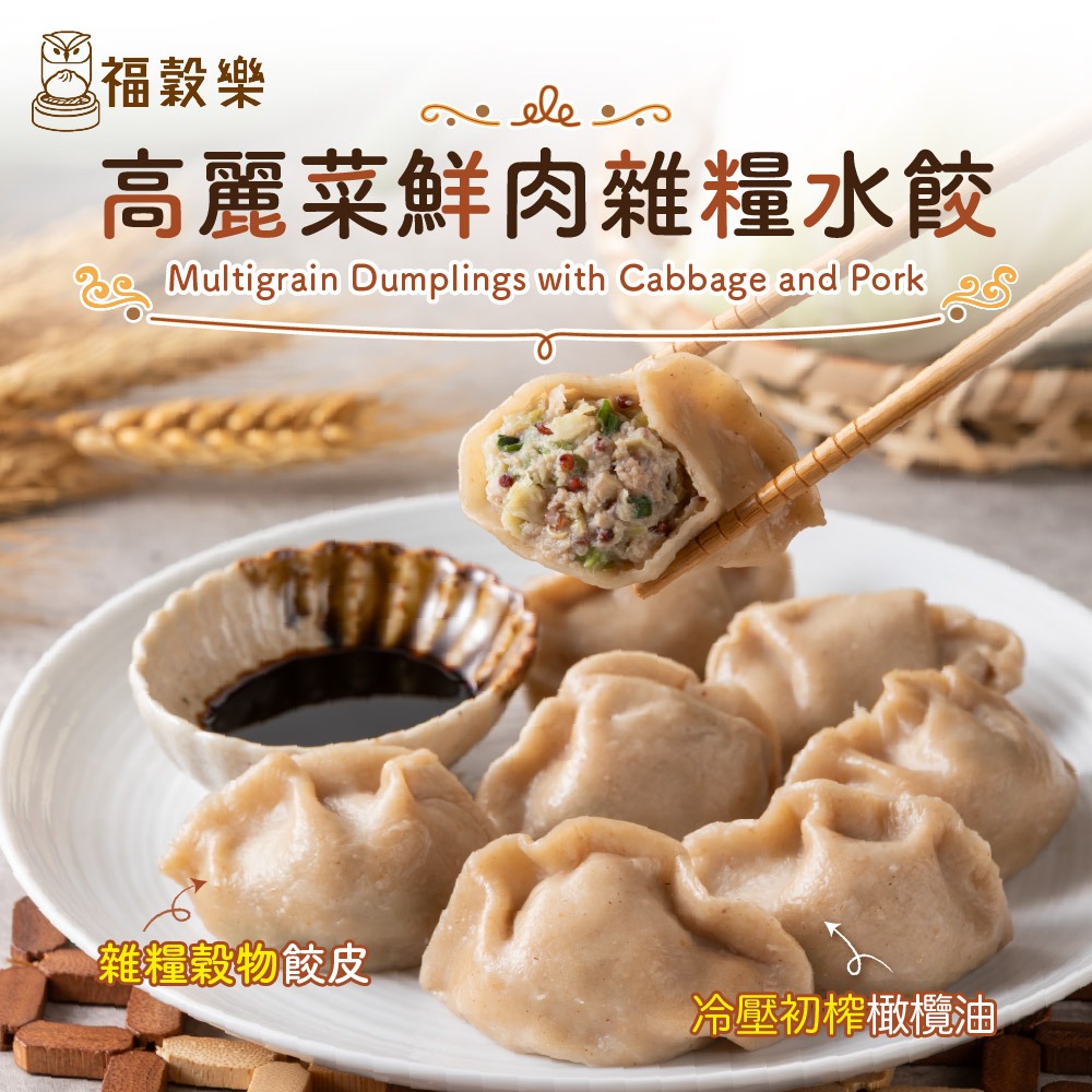 【福穀樂】高麗菜鮮肉雜糧水餃1包(葷食 煎餃子 葷食鍋貼 生鮮熟食 冷凍水餃 團購美食 台灣豬肉 全麥餃皮 高麗菜餃)