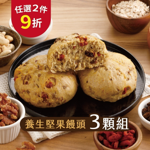 【福穀樂】養生堅果饅頭 3入(全素 雜糧饅頭 超級食物 國民饅頭 無籽葡萄乾 營養點心 代餐零食 台南名產 馬可先生)