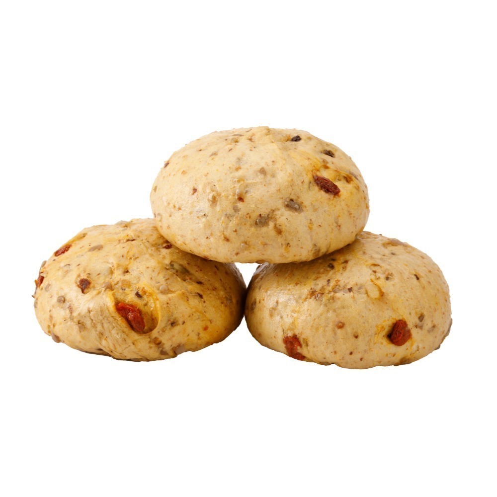 商品成分:麵粉、水、葵花多穀雜糧粉(小麥、葵花籽、燕麥、玉米(非基改)、亞麻仁籽、裸麥、馬鈴薯、香料(胡荽、咖哩))、大麥燕麥雜糧粉(小麥、燕麥、大麥、玉米(非基改)、葵花籽、亞麻仁籽、糙米、芝麻、黃豆(非基改)、薑黃)、葡萄乾、葵花子、枸杞、核桃、特級冷壓橄欖油、南瓜子、腰果、自養新鮮酵母。