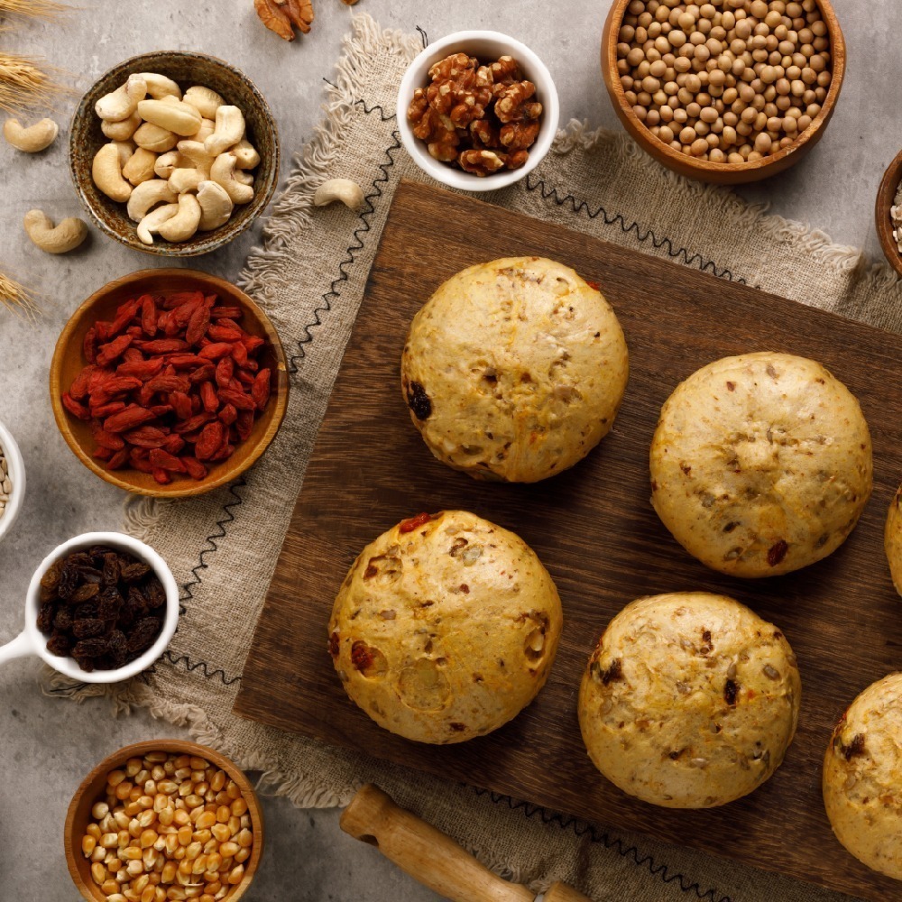 ✿穀物饅頭可自由搭配食材,做成早午餐料理,如烤饅頭、饅頭夾蛋、饅頭漢堡等選擇,取代白飯當主食,能增加膳食纖維攝取,是替換主食的健康選擇!