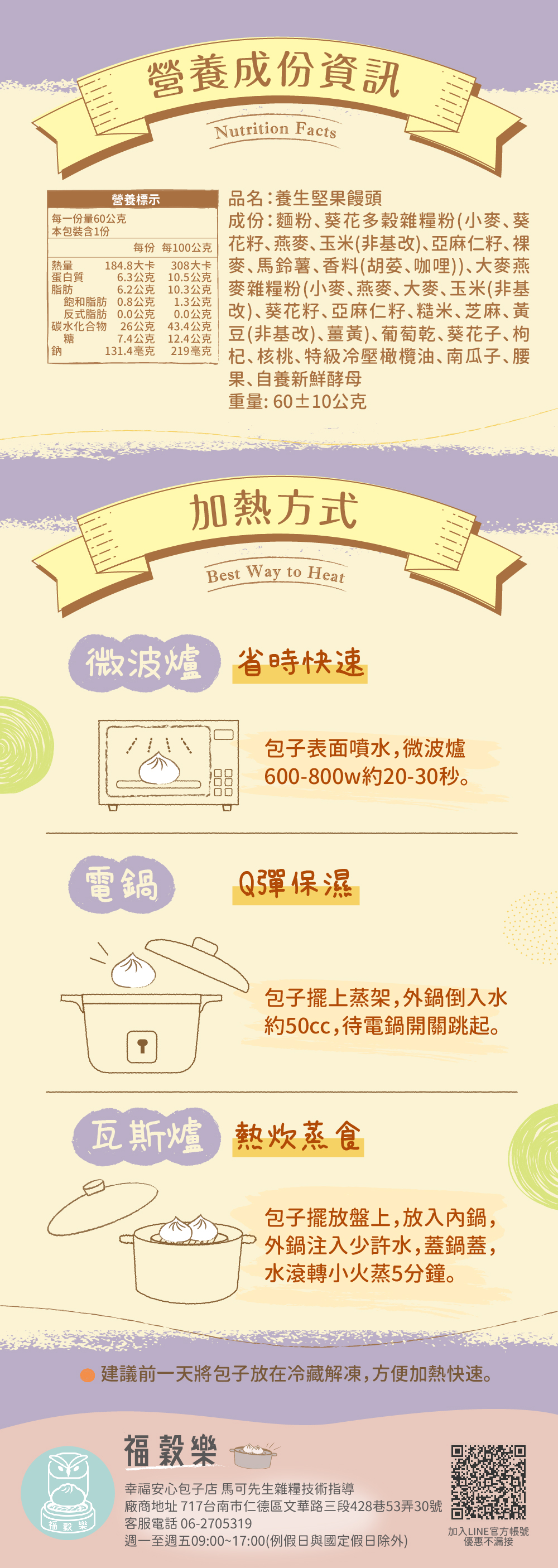 過敏原資訊:本產品含有芝麻、黃豆、穀物麩質、堅果種籽類原料,不適合其過敏體質食用