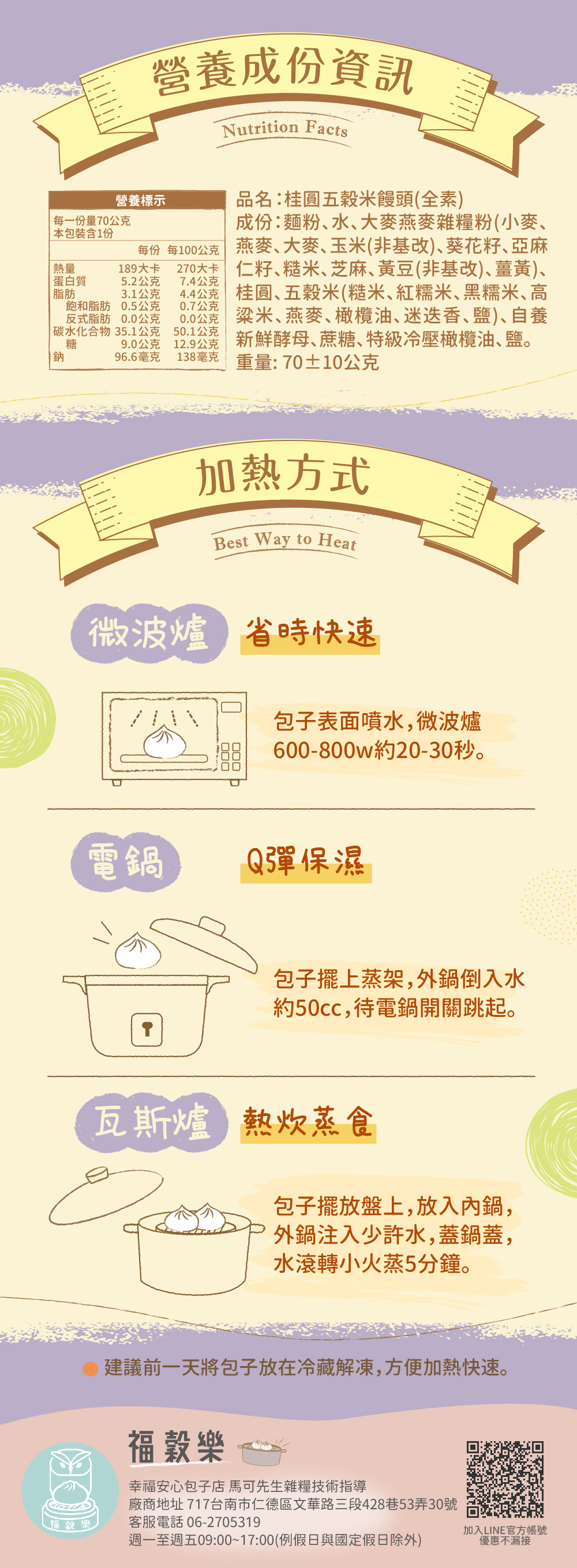 桂圓五穀米饅頭(全素) 膳食纖維含量:2.9g/每100公克