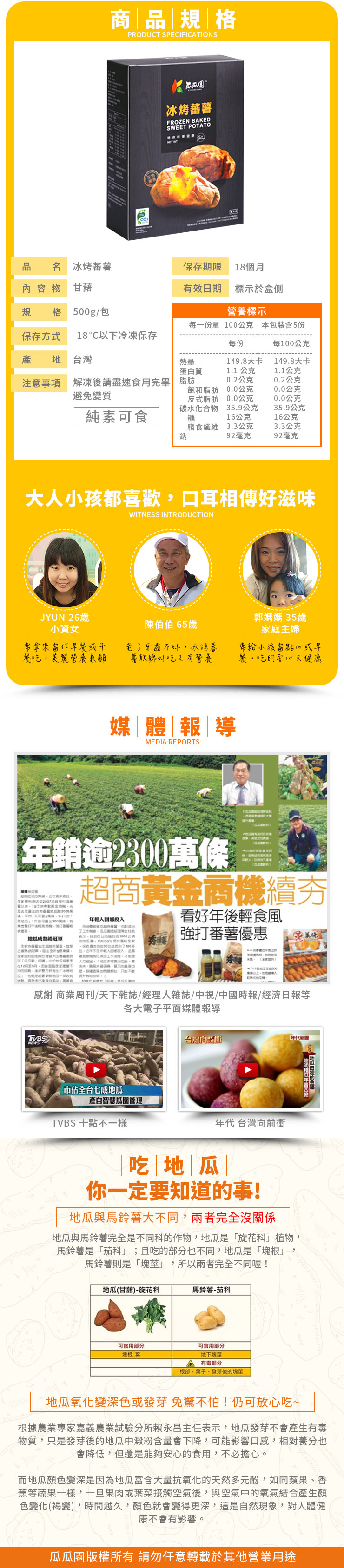 ※地瓜表面可能產生白色結晶物質,此為地瓜本身自然糖分結晶,請安心食用。