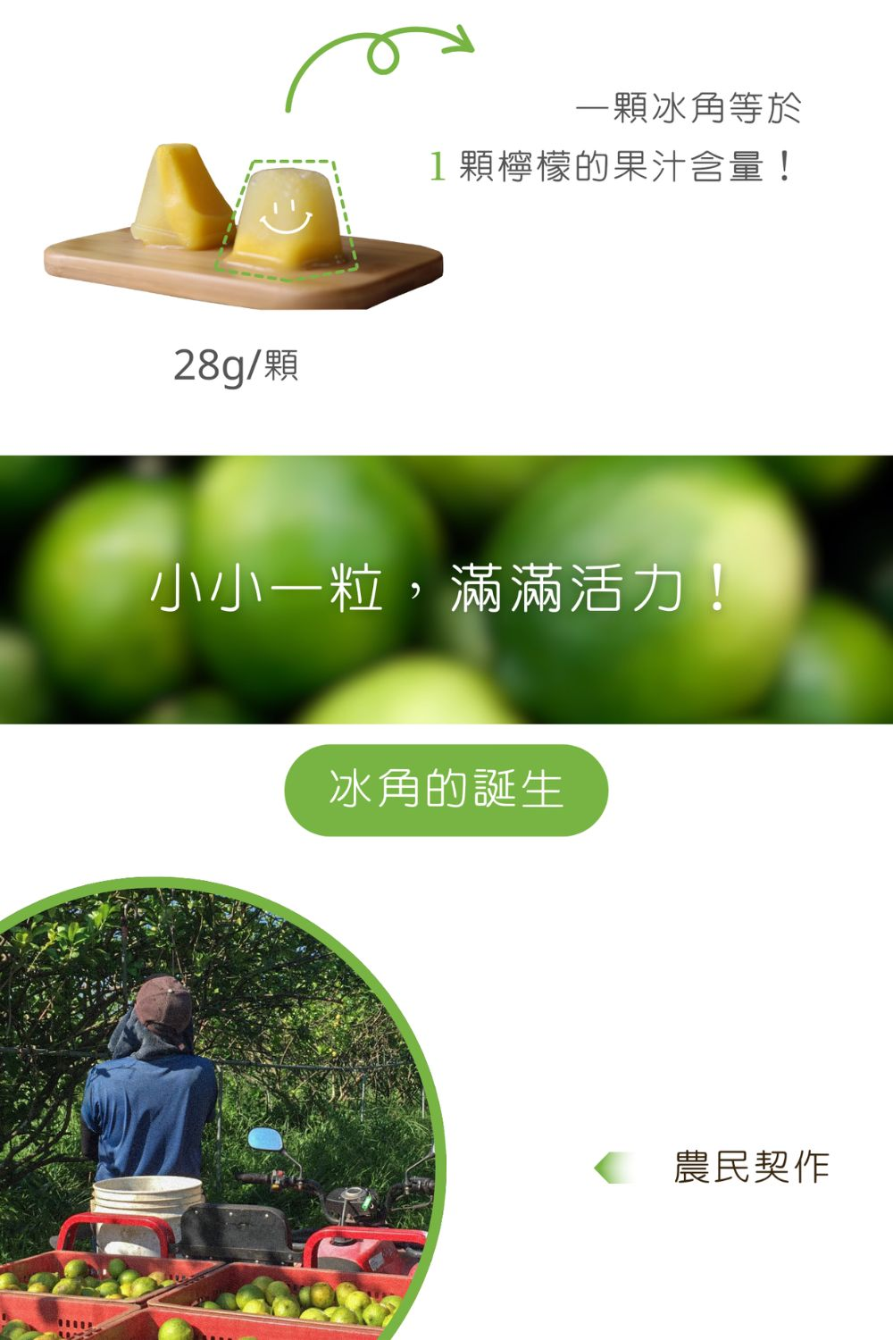 嚴選老實農的優質「優利卡檸檬」原汁,屏東農場直送100%自然原味,顆顆飽滿多汁,香味四溢,一顆冰角等於1顆檸檬果汁的含量,適用於烹飪、烘焙、調配飲品等等,讓您每天輕鬆補充維他命C!