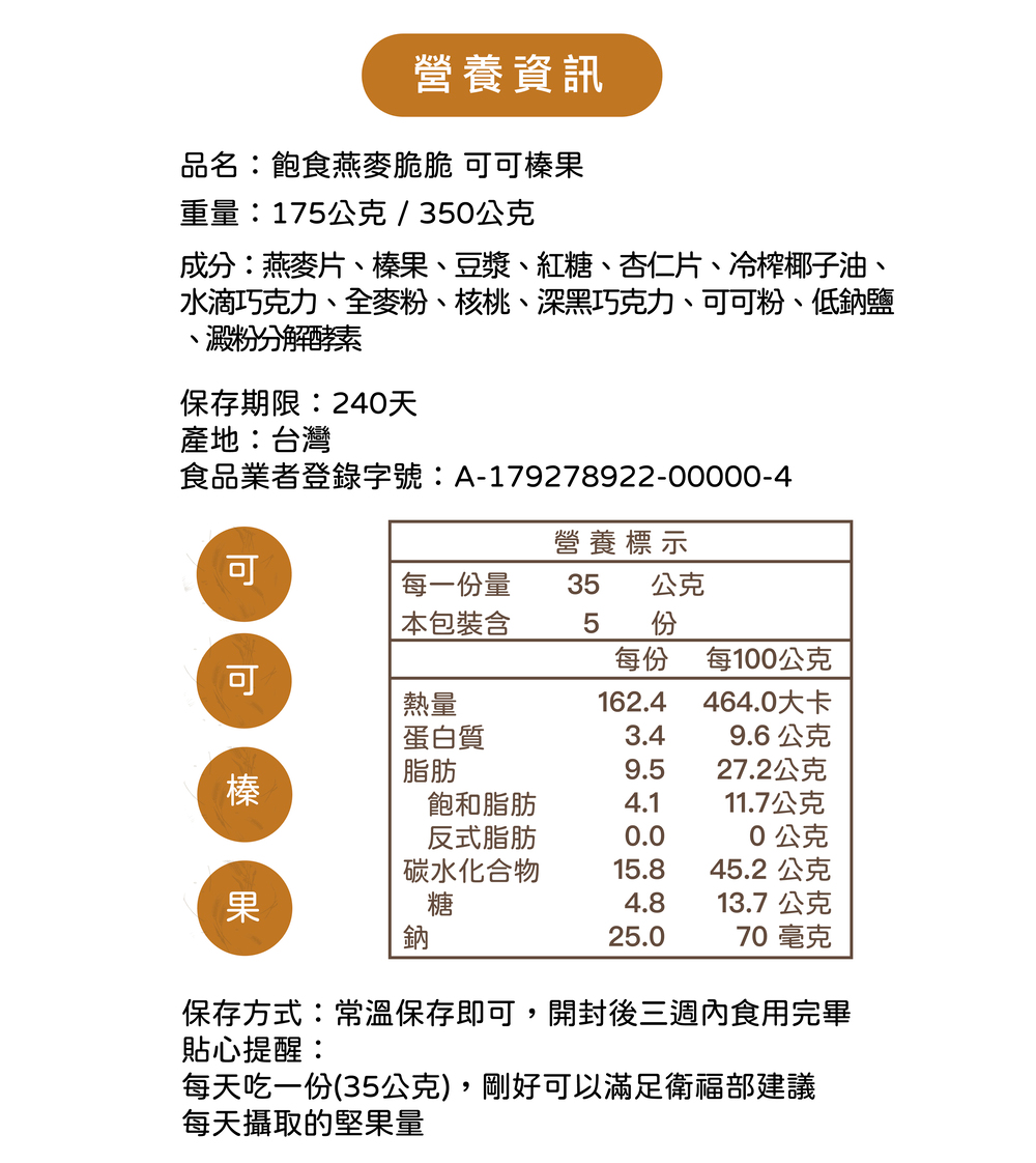 過敏原標示:本產品含有堅果、麩質之穀物,不適合對其過敏體質食用