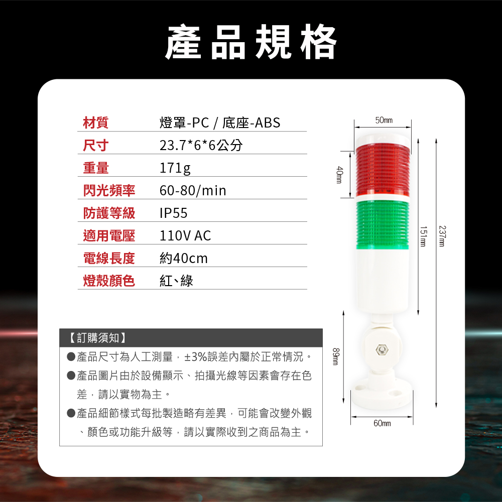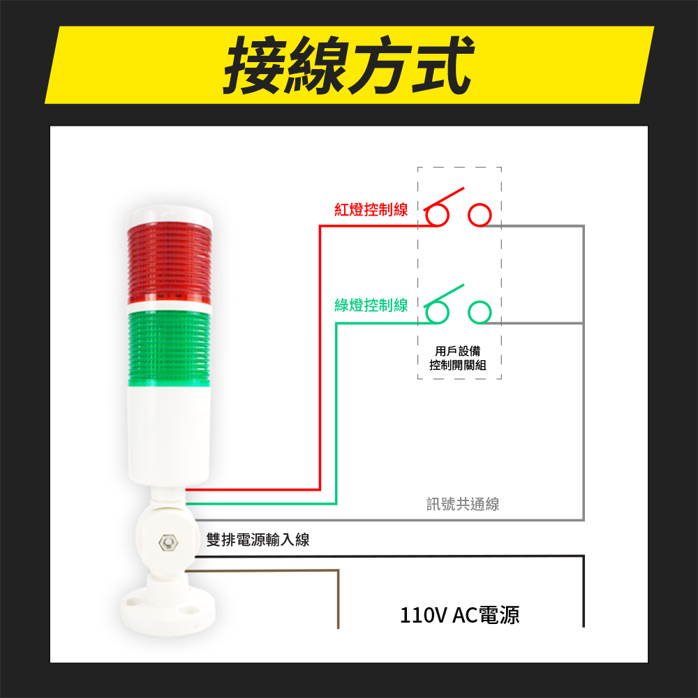產品名稱:MET-RGL110V_紅綠雙層警示燈