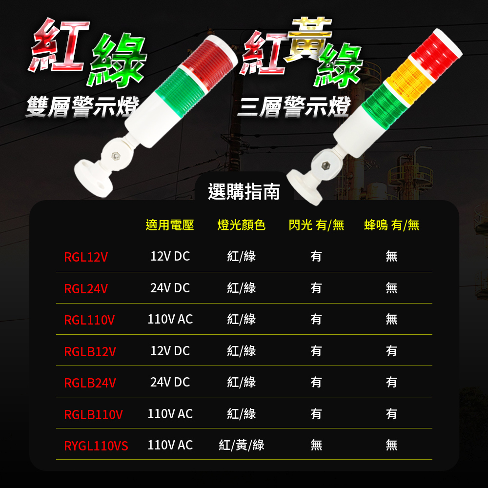 LED警示燈 多層警示燈 停車場警示燈 閃光警報器 信號指示燈 運行故障燈24V 機台工程警示燈 RGL110V
