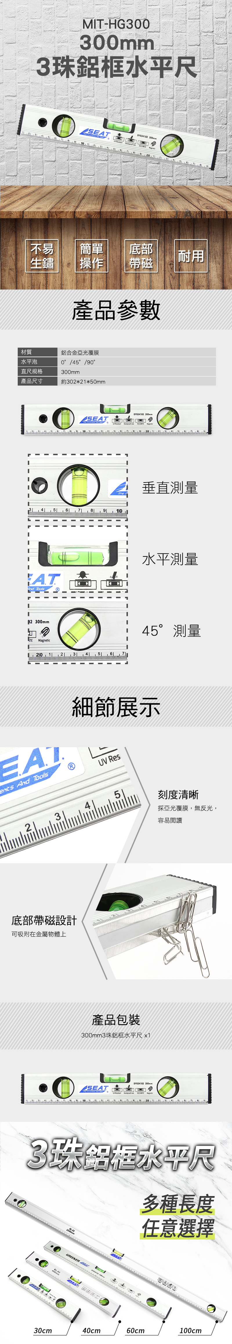 MIT-HG300_3珠鋁框水準尺(300mm)