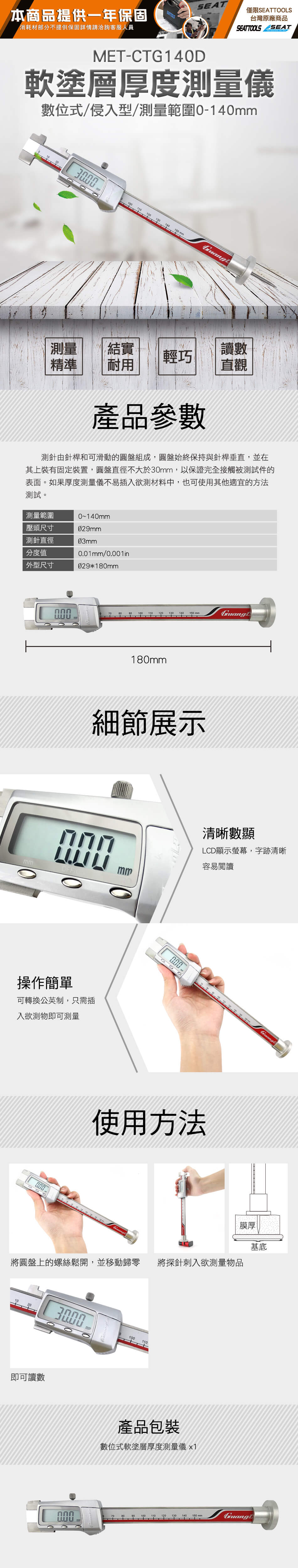 *數位式 *侵入式 *測量範圍0-140mm