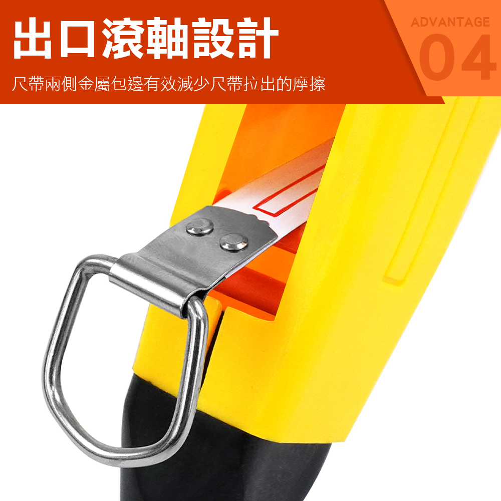 - 旋轉即可收回尺帶,雙向柄頭可固定尺帶。