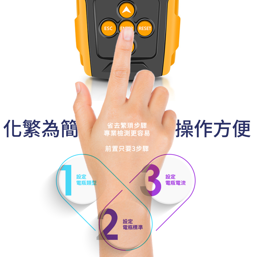 -前置設定只要3步驟,按下檢測鍵3秒數據就顯示。
