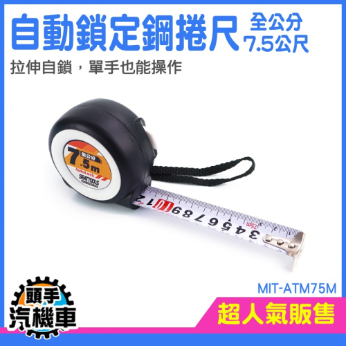 頭手汽機車 自動捲尺 耐磨耐摔 伸縮尺 黑色捲尺 MIT-ATM75M 捲尺快扣 鋼捲尺 全公分捲尺 測量尺 木工尺