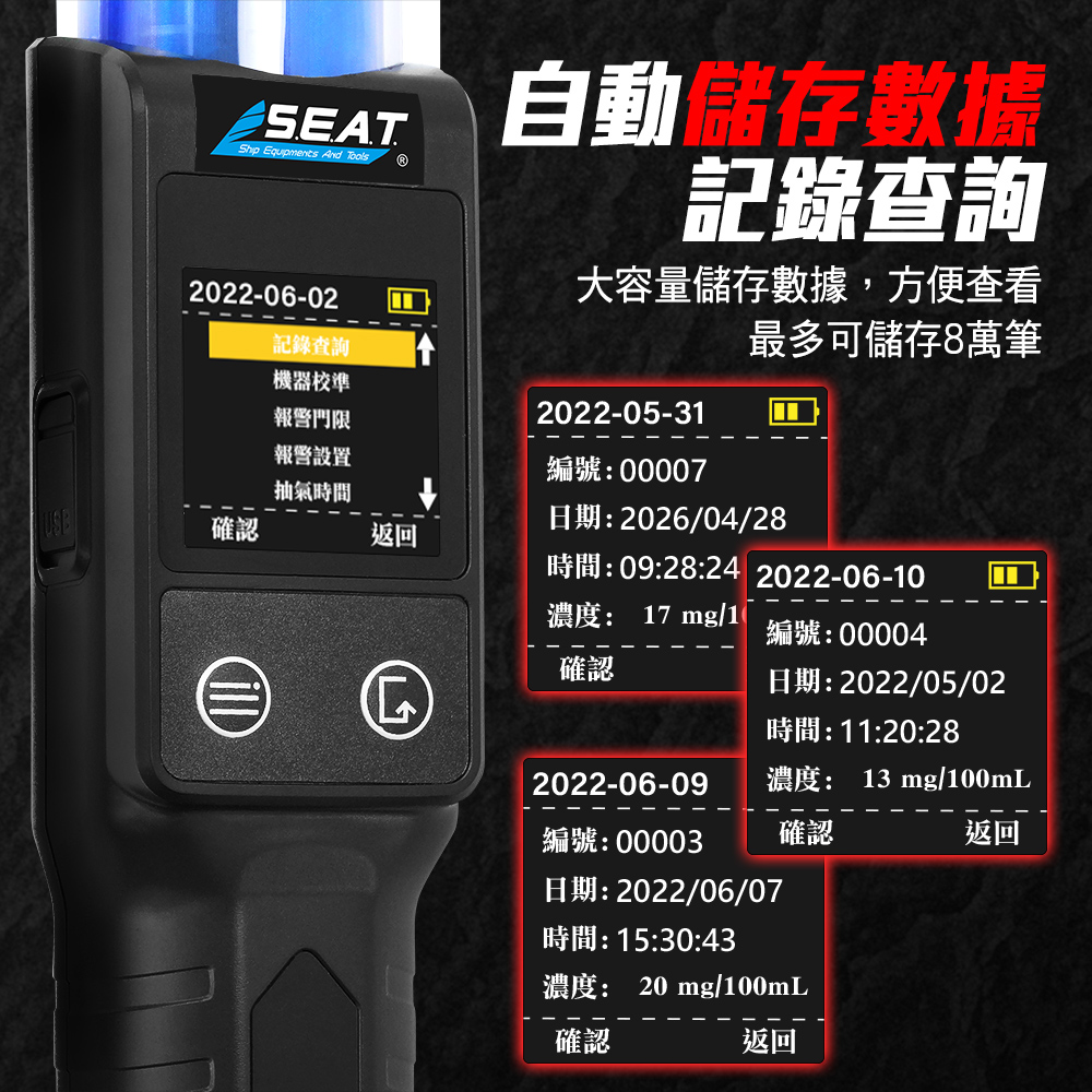 測量單位:mg/L(BrAC).mg/100mL(BAC) 可選