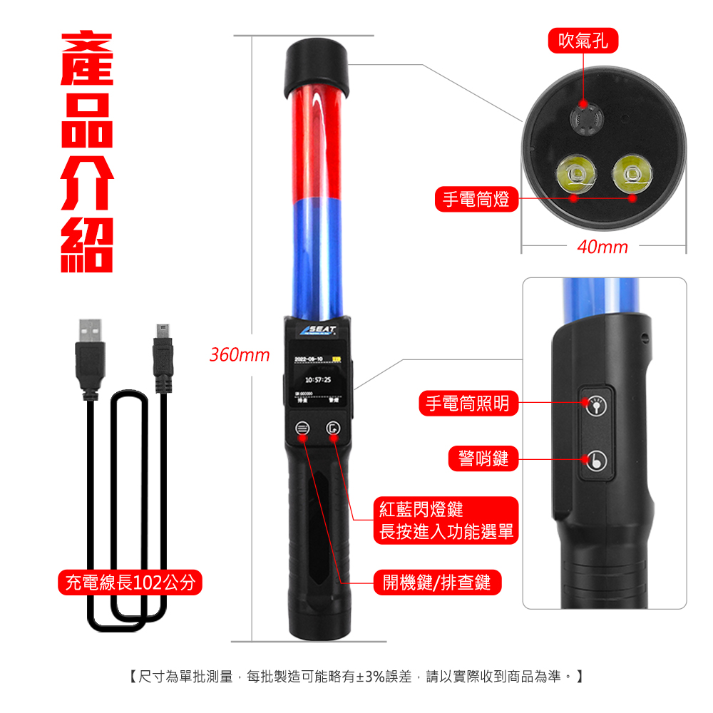 -指揮棒功能,能發出警示紅藍光,三段模式切換。