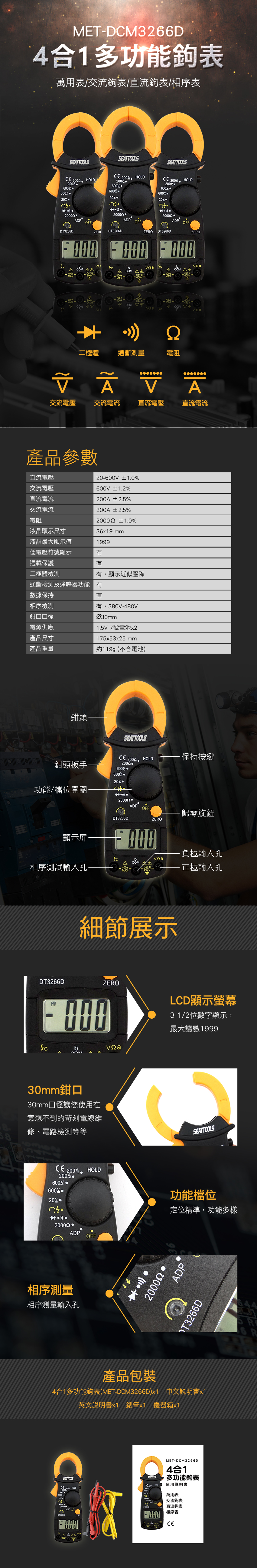 MET-DCM3266D_4合1多功能鉤表(萬用表+交流鉤表+直流鉤表+相序表)