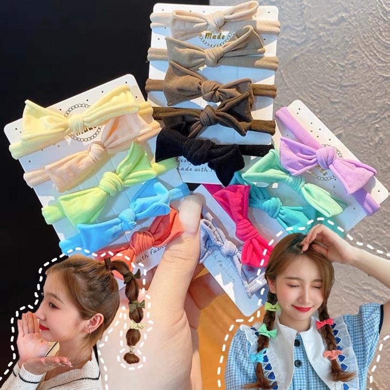[現貨]韓版高彈力蝴蝶結髮圈 (5條入)百搭造型髮飾毛巾髮圈