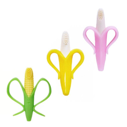 [現貨]寶寶矽膠磨牙香蕉玉米牙刷固齒器