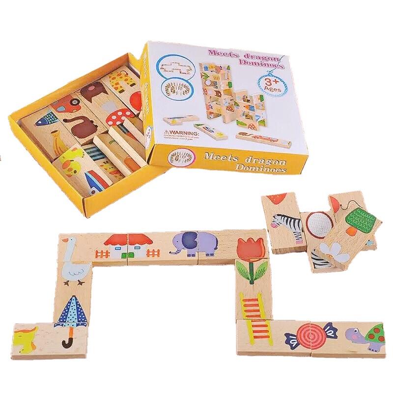 [現貨]木製28片動物拼圖接龍骨牌
