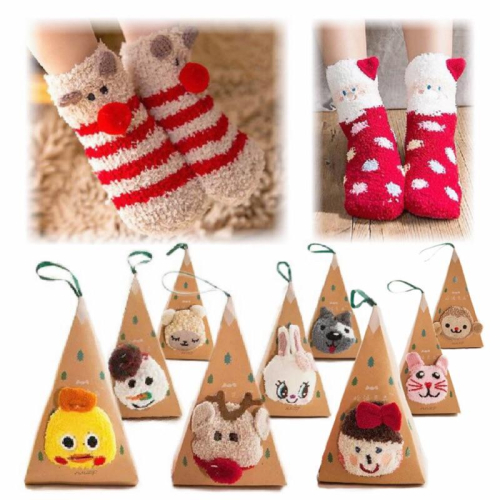 [現貨]冬季聖誕版盒裝加厚加絨兒童 瑚絨立體動物保暖襪