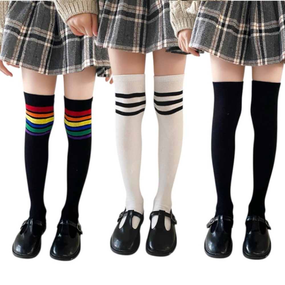 [現貨]兒童百搭條紋大腿襪 膝上襪 黑色長襪 學院風拍照素色長襪 白色襪子 黑色襪子