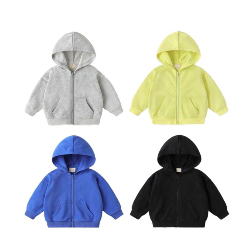 [現貨]春秋薄款兒童連帽外套 百搭素色拉鍊外套