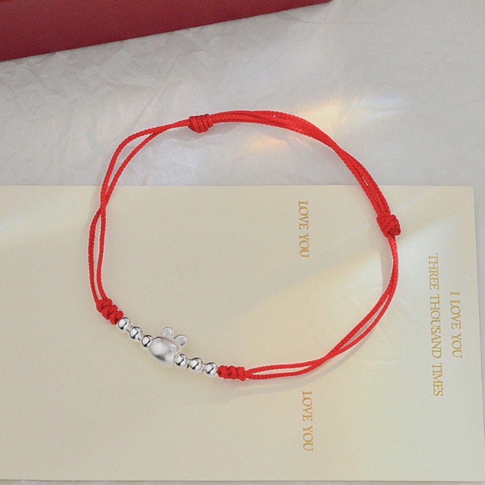 【23.𝙨𝙩𝙪𝙙𝙞𝙤】 S925純銀可愛小兔子手鍊手抽拉式紅繩CB05