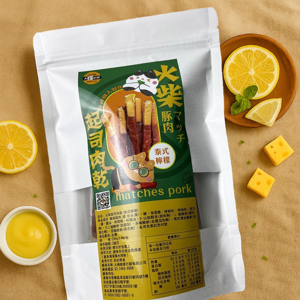 品名: 火柴起司肉乾(泰式檸檬)