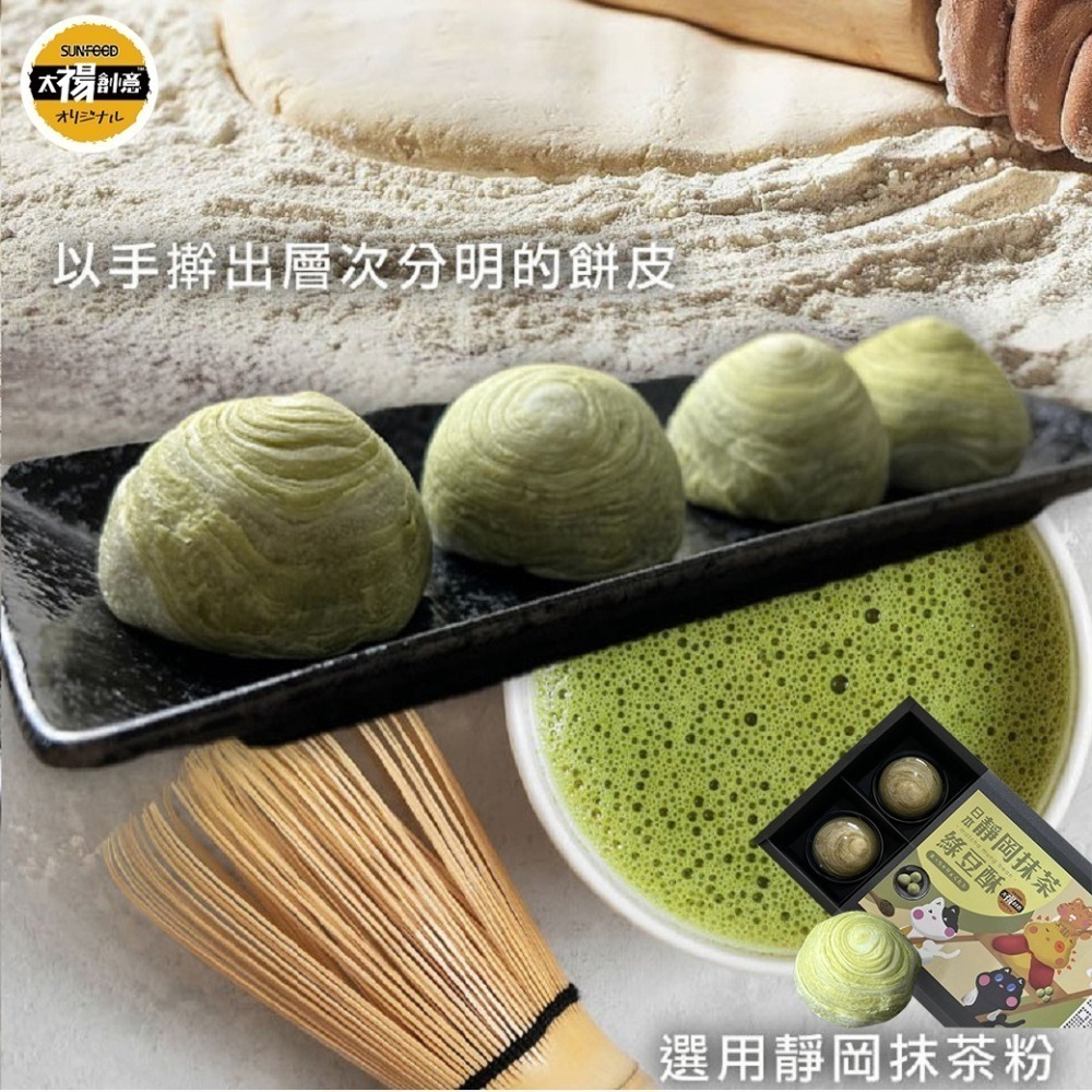 商品成分:小麥麵粉、綠豆仁、豬油、進口奶油、糖、綠茶(靜岡抹茶)