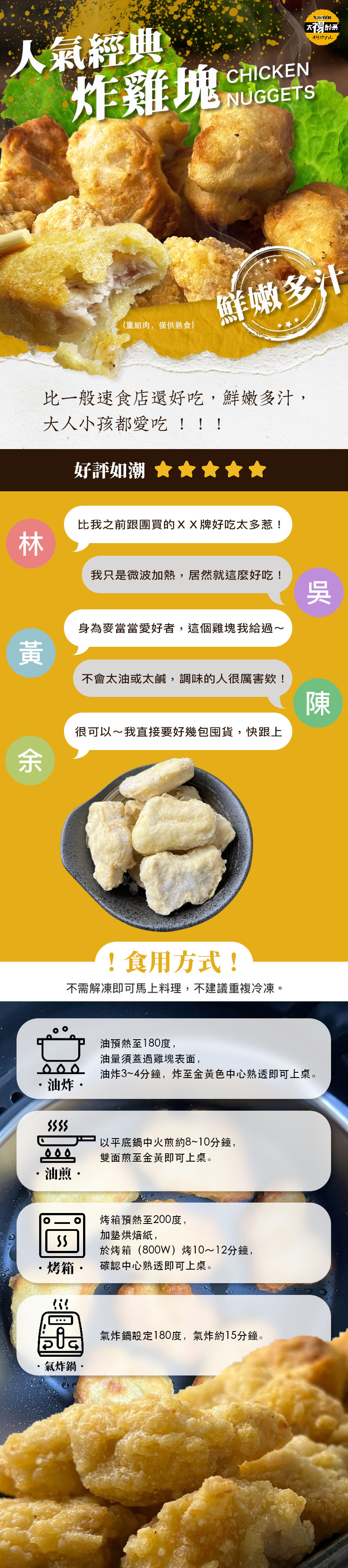 【人氣經典炸雞塊】(重組肉,僅供熟食)