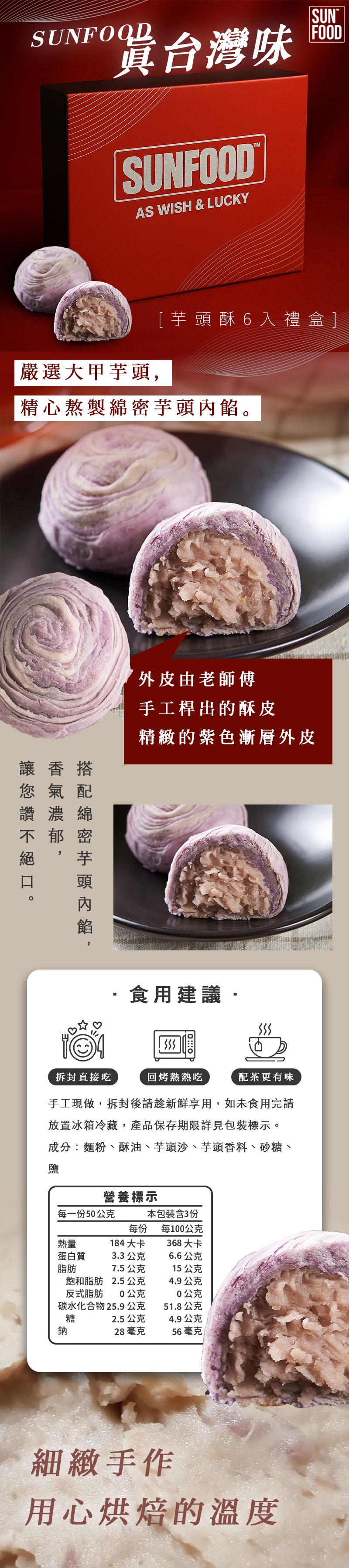 商品品名:SUNFOOD LUCKY版 台灣芋頭酥(6入)禮盒