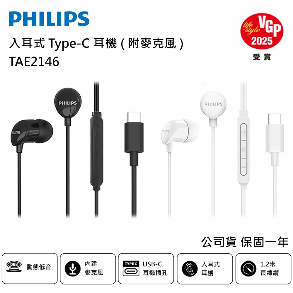 【PHILIPS 飛利浦】高音質入耳式Type-C有線耳機 TAE2146 附麥克風 ( 適用iPhone/安卓系統)